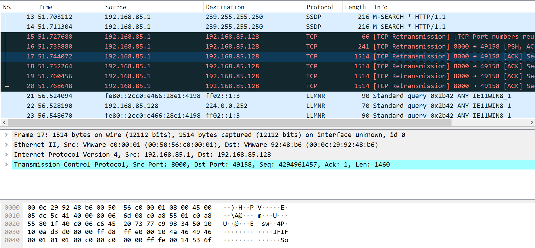 另寻他路,考虑到图片是通过网络传输的,故试图导出流量数据,搜索后发现 CapLoader 正好符合要求,导出得到 pcapng 格式的流量包,在 TCP Retransmission 中可以找到图片: